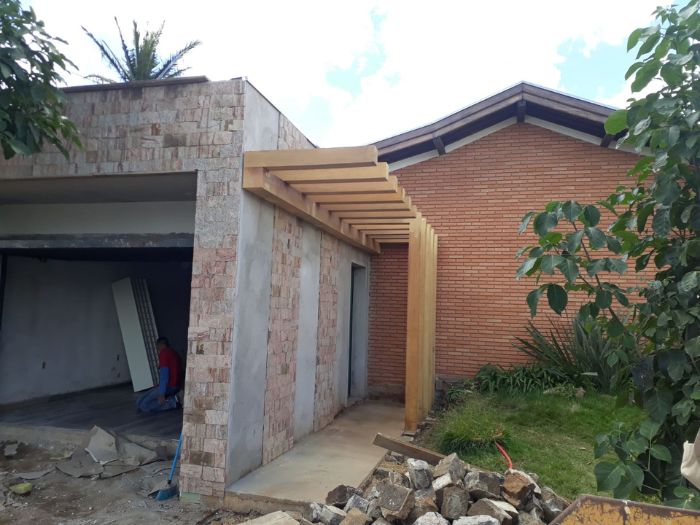Este projeto destaca um elegante pergolado construído com eucalipto tratado serrado. O uso da madeira tratada garante durabilidade e resistência às intempéries, tornando o pergolado uma estrutura robusta e esteticamente agradável. O eucalipto tratado serrado oferece um acabamento refinado, realçando a beleza natural da madeira enquanto proporciona um ambiente convidativo e harmonioso.