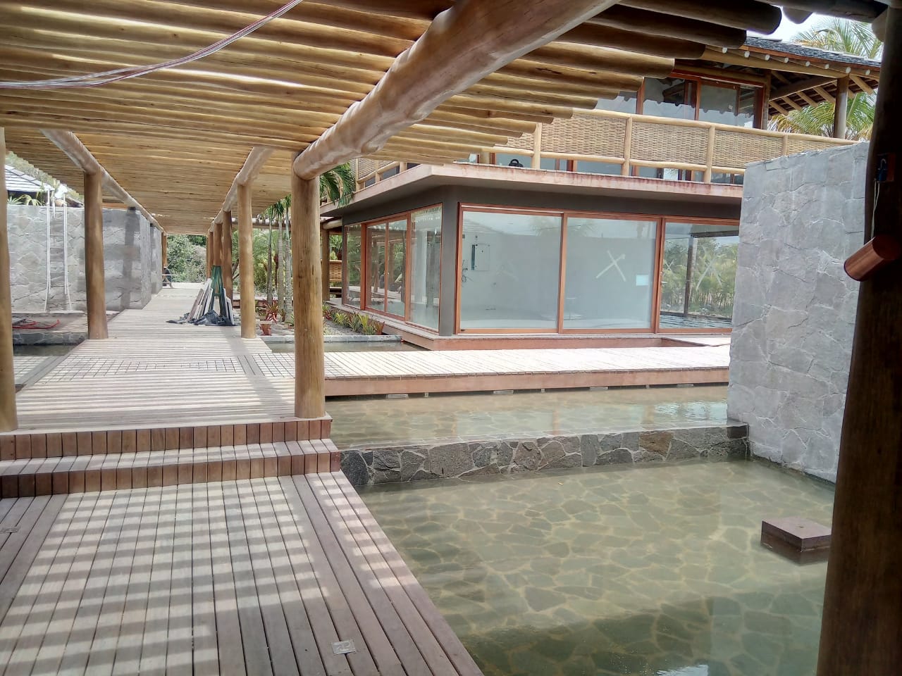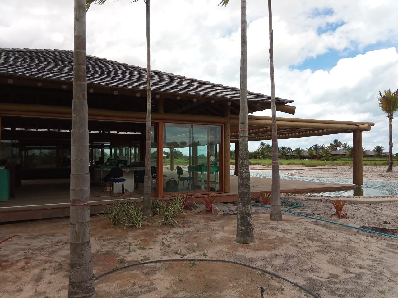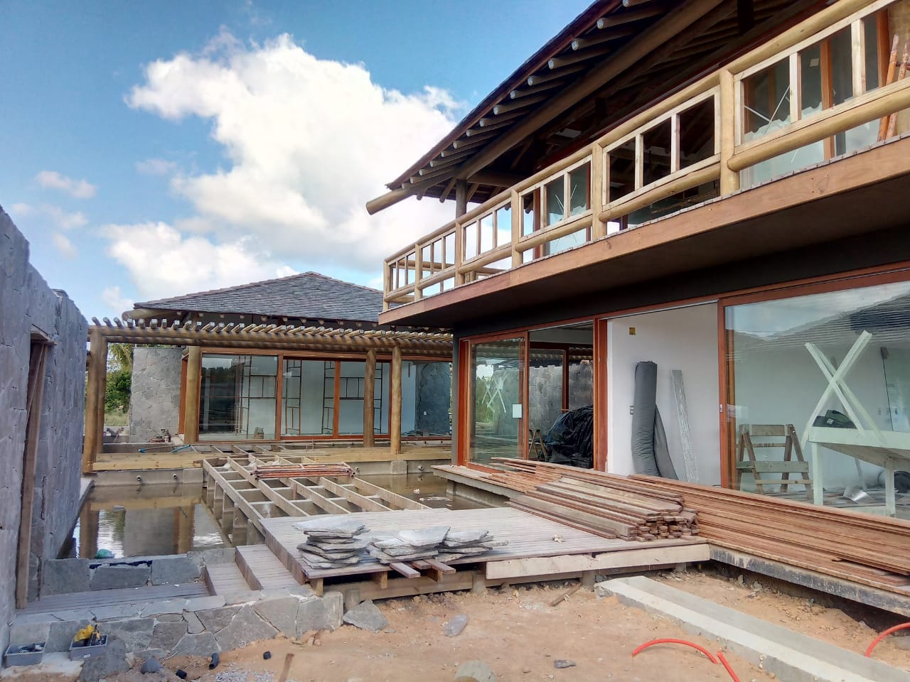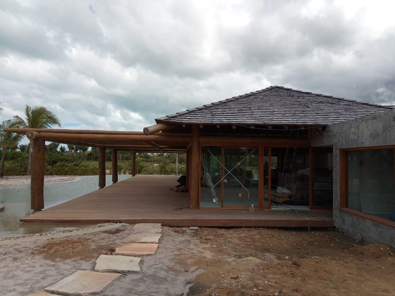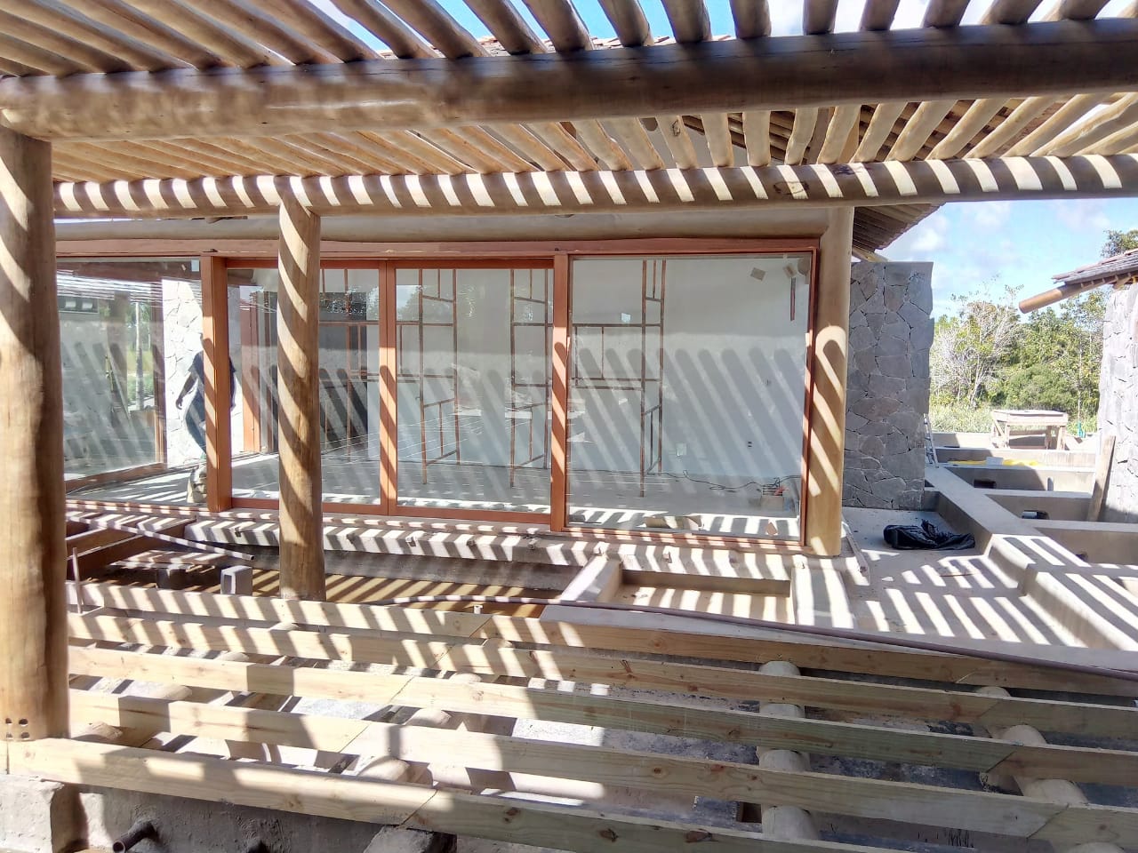 Esta combinação de materiais não apenas realça a estética da casa, mas também oferece resistência e sustentabilidade, integrando-se perfeitamente à paisagem costeira.