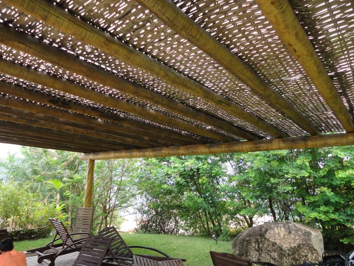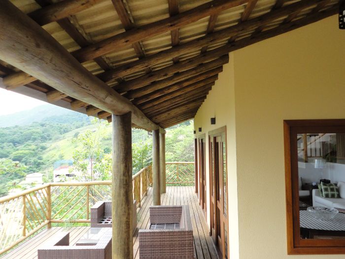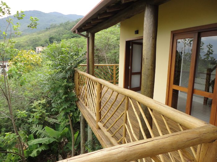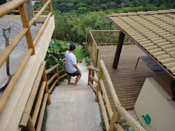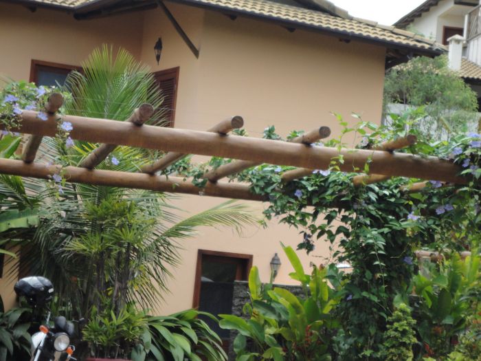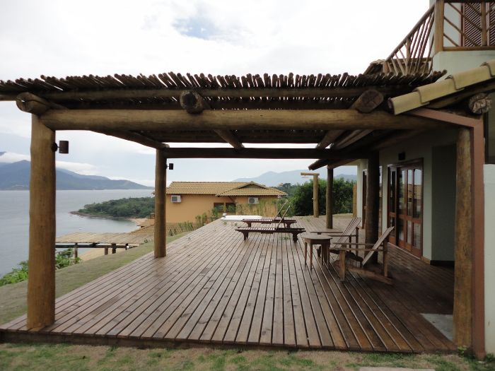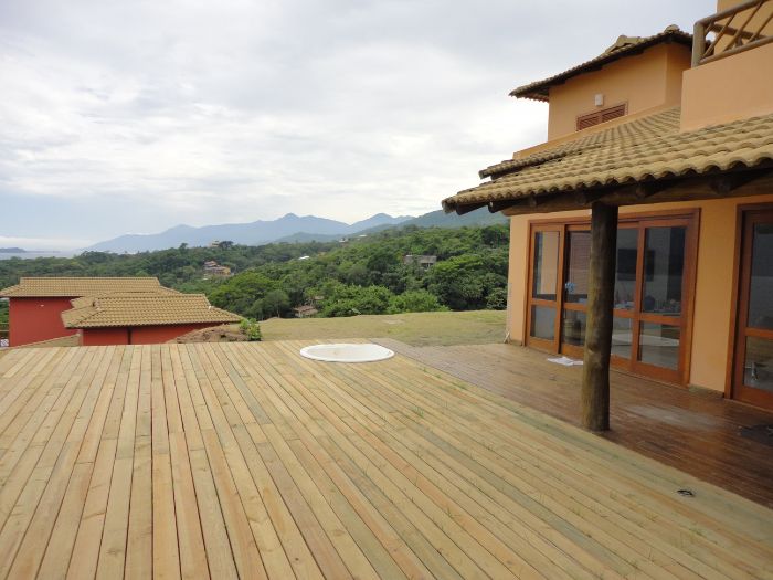 No projeto deste maravilhoso condomínio em Ilha Bela, a madeira tratada desempenha um papel fundamental na harmonização das construções com a natureza. Pilares, caibros e vigas de eucalipto roliço tratado fornecem estrutura e durabilidade. Decks de pinus tratado adicionam charme rústico aos espaços externos. Guarda-corpos e pérgolas em eucalipto roliço complementam o design natural e elegante, integrando-se perfeitamente ao ambiente.