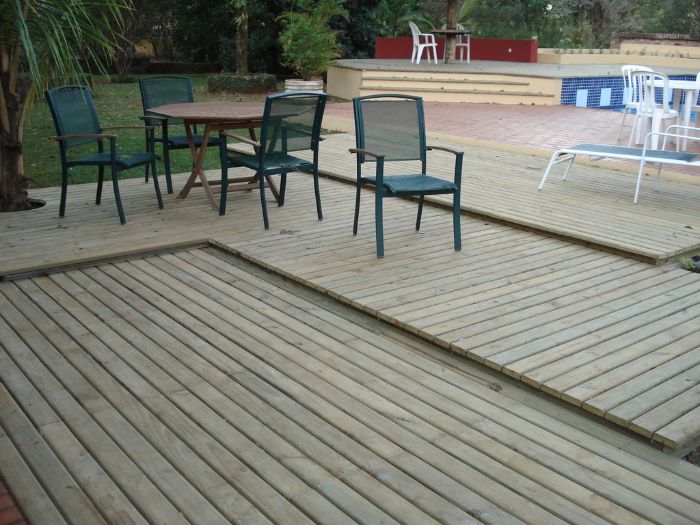 No projeto deste deck de beira de piscina, a madeira tratada de pinus foi escolhida por sua durabilidade e resistência às intempéries. Este material não apenas confere um acabamento elegante e natural ao ambiente, mas também assegura uma estrutura segura e de longa duração para momentos de lazer ao ar livre.