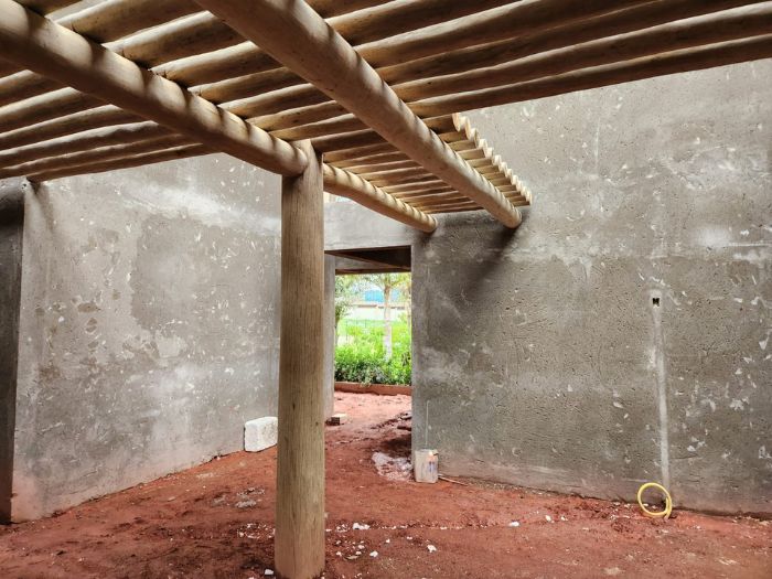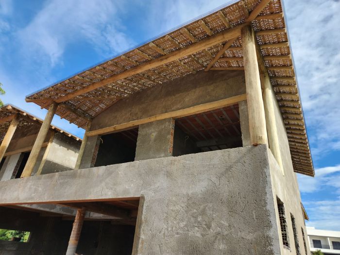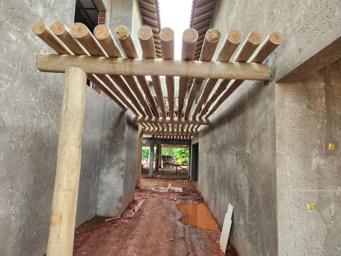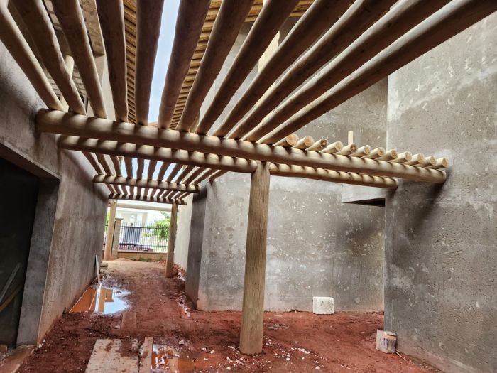 Nesta residência, o eucalipto roliço tratado transcende a mera estrutura, tornando-se um elemento decorativo que abraça a casa com a rusticidade aconchegante da natureza. A madeira, presente nas paredes e detalhes, traduz a beleza autêntica em um lar acolhedor e cheio de personalidade. Mais que um lar, um refúgio natural que emana paz e bem-estar.