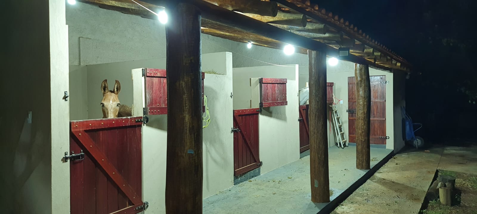 Este estábulo destaca-se pela durabilidade e beleza da madeira de eucalipto citriodora roliço tratado, utilizada tanto na estrutura do telhado quanto nos pilares de sustentação. A madeira tratada garante resistência superior, perfeita para projetos robustos e de longa duração.
