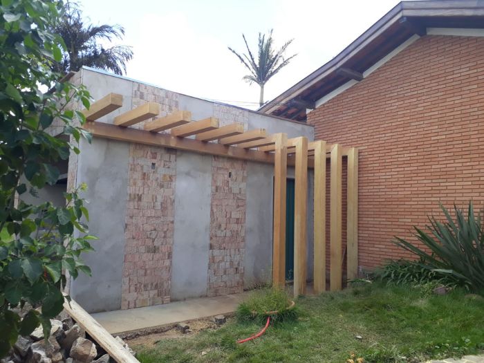 Este projeto destaca um elegante pergolado construído com eucalipto tratado serrado. O uso da madeira tratada garante durabilidade e resistência às intempéries, tornando o pergolado uma estrutura robusta e esteticamente agradável. O eucalipto tratado serrado oferece um acabamento refinado, realçando a beleza natural da madeira enquanto proporciona um ambiente convidativo e harmonioso.
