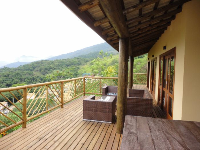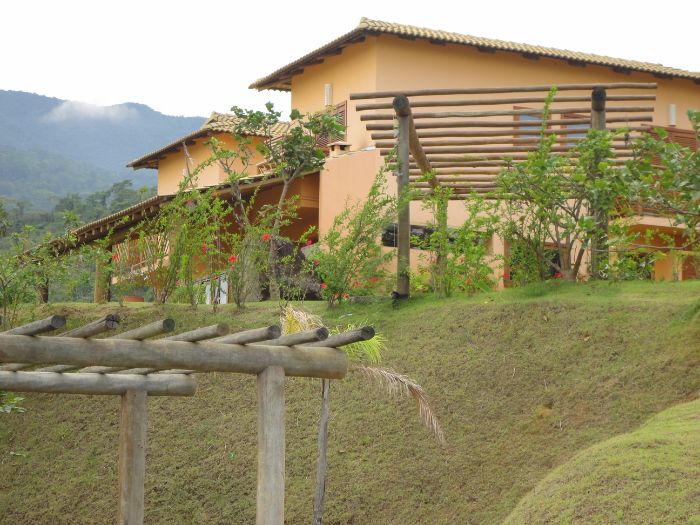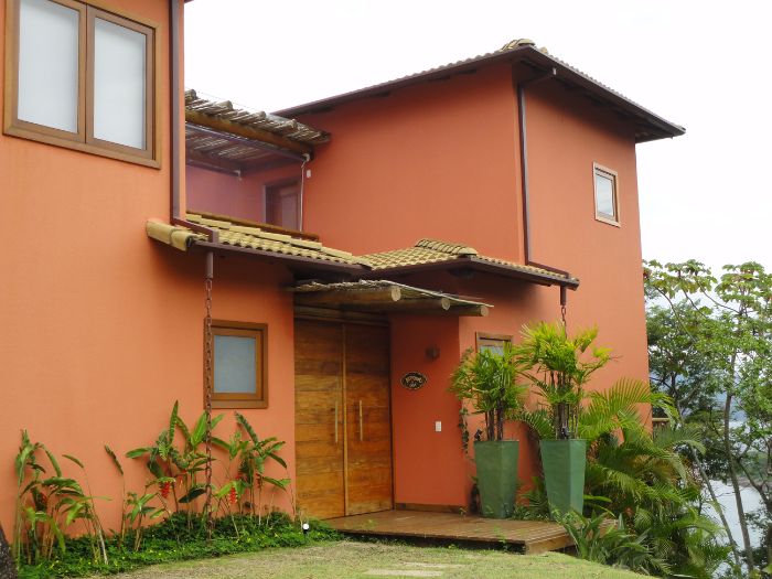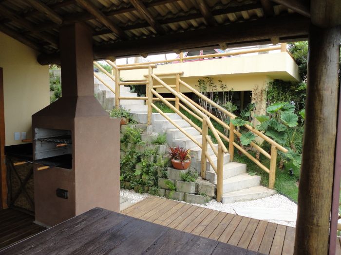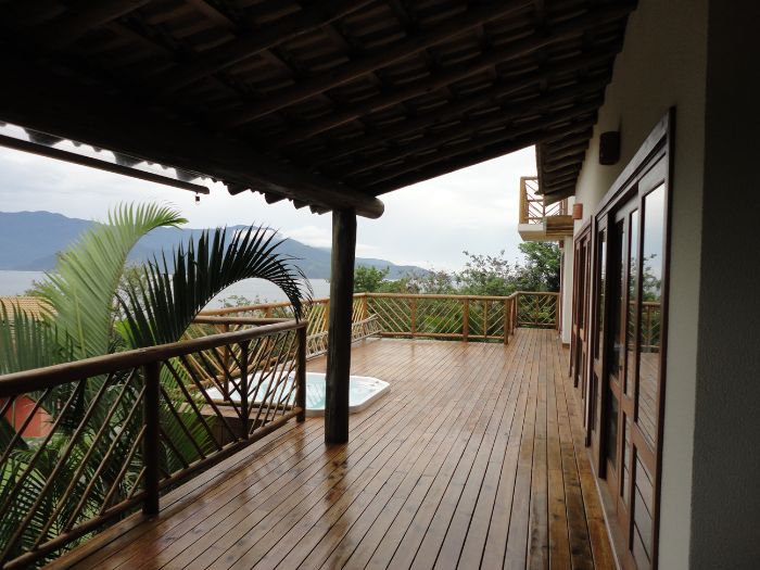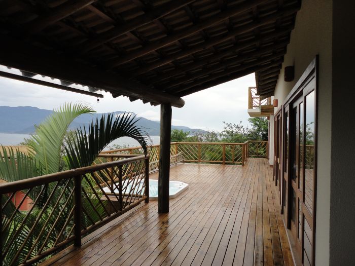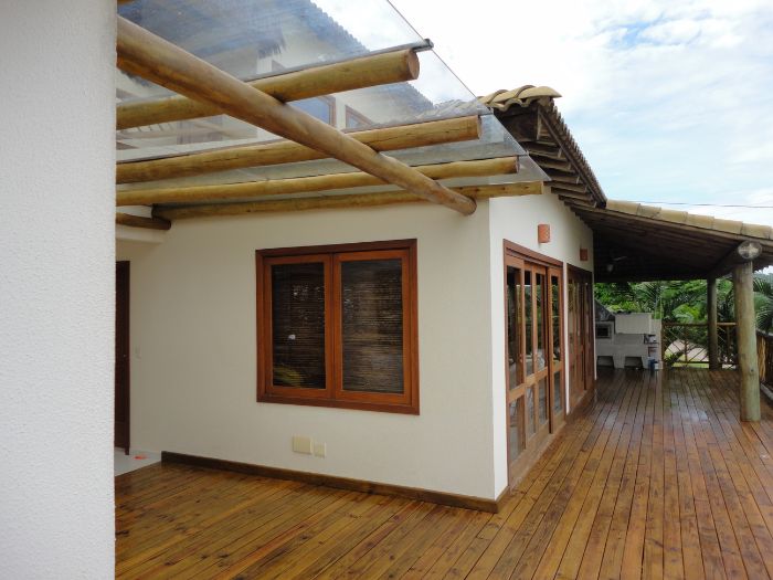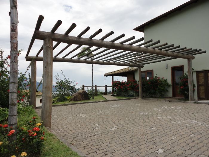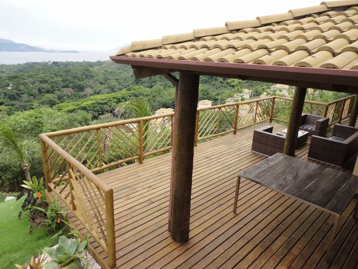 No projeto deste maravilhoso condomínio em Ilha Bela, a madeira tratada desempenha um papel fundamental na harmonização das construções com a natureza. Pilares, caibros e vigas de eucalipto roliço tratado fornecem estrutura e durabilidade. Decks de pinus tratado adicionam charme rústico aos espaços externos. Guarda-corpos e pérgolas em eucalipto roliço complementam o design natural e elegante, integrando-se perfeitamente ao ambiente.