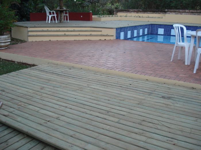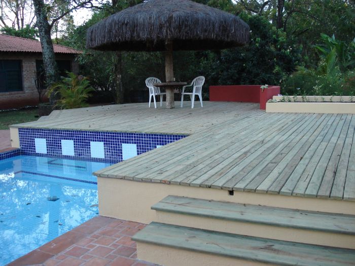 No projeto deste deck de beira de piscina, a madeira tratada de pinus foi escolhida por sua durabilidade e resistência às intempéries. Este material não apenas confere um acabamento elegante e natural ao ambiente, mas também assegura uma estrutura segura e de longa duração para momentos de lazer ao ar livre.