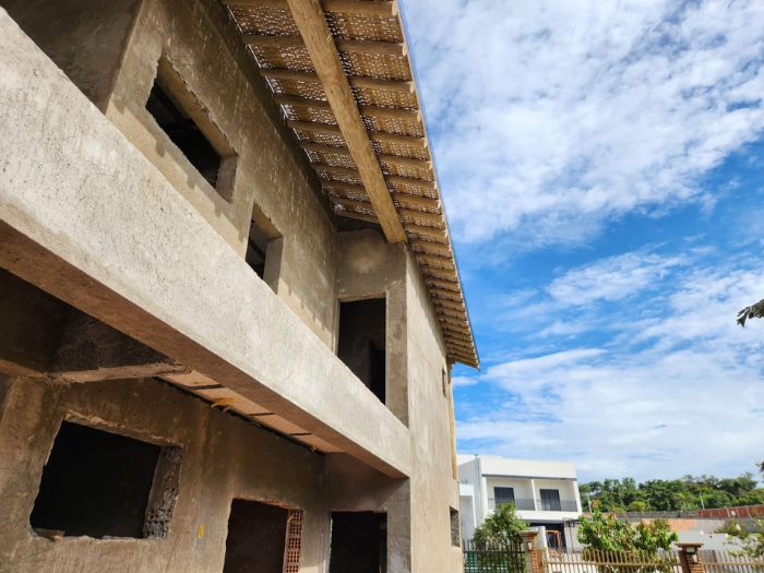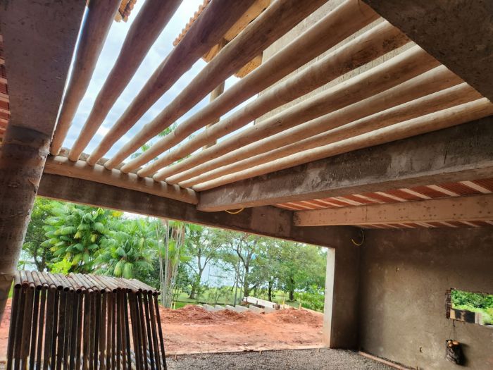 Nesta residência, o eucalipto roliço tratado transcende a mera estrutura, tornando-se um elemento decorativo que abraça a casa com a rusticidade aconchegante da natureza. A madeira, presente nas paredes e detalhes, traduz a beleza autêntica em um lar acolhedor e cheio de personalidade. Mais que um lar, um refúgio natural que emana paz e bem-estar.