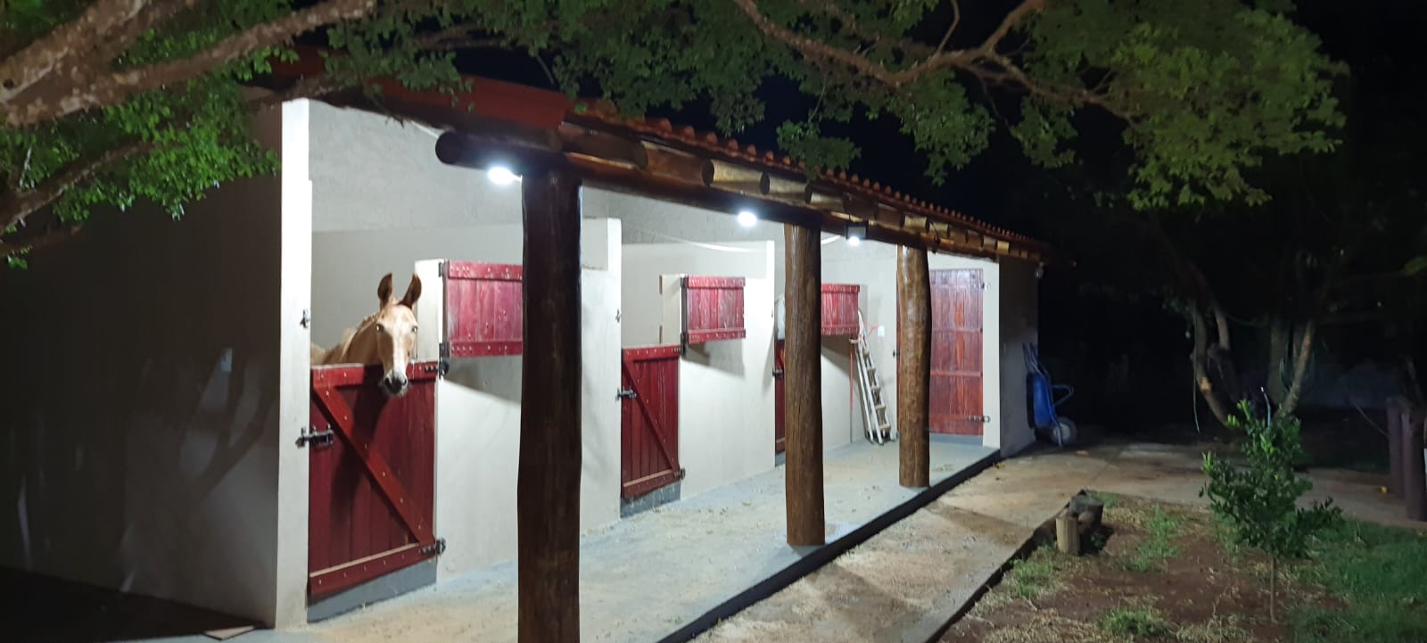 Este estábulo destaca-se pela durabilidade e beleza da madeira de eucalipto citriodora roliço tratado, utilizada tanto na estrutura do telhado quanto nos pilares de sustentação. A madeira tratada garante resistência superior, perfeita para projetos robustos e de longa duração.